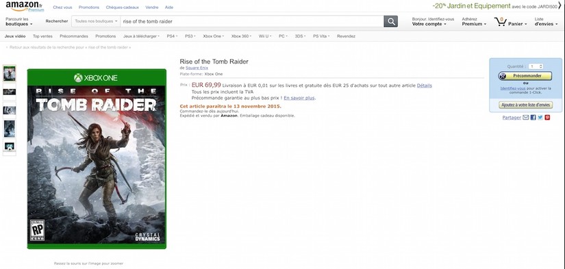 Amazon France ha filtrado la posible fecha de lanzamiento de RiseoftheTombRaider. Según dicha plataforma, la nueva aventura de LaraCroft se lanzaría al mercado el 13 de noviembre de, por supuesto, este mismo año.