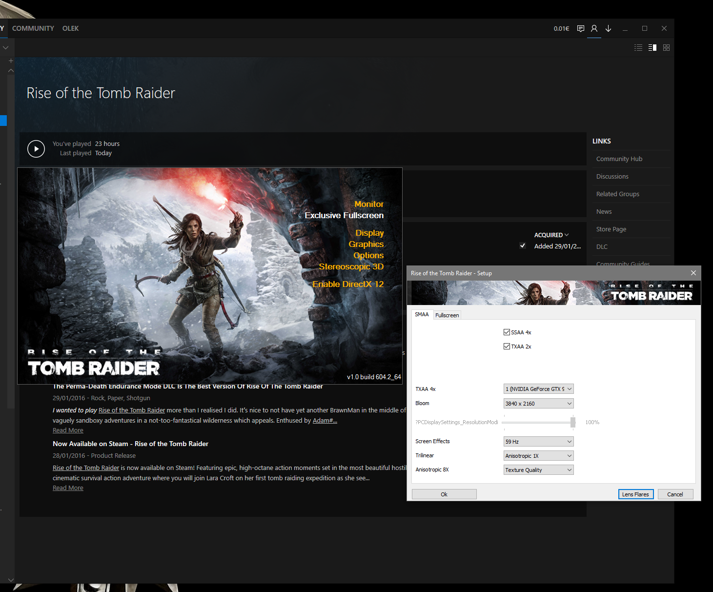 Esta opción no funciona por el momento, podemos suponer que lo hará en un futuro no muy lejano. Además de esto, parece que Nixxes también va añadir un opción para activar el anti-aliasing TXAA de Nvidia.