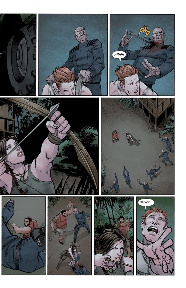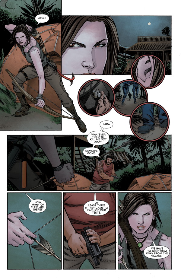 ¡El sexto número de la segunda serie de cómics de Tomb Raider ya tiene cubierta! Lara Croft salta ágilmente desde una roca, para darle un puñetazo a uno de sus enemigos.