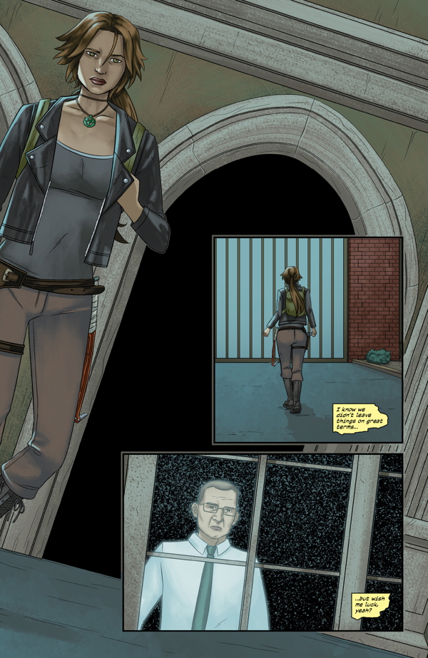 Capturada y maniatada, se encuentra con un viejo conocido de su padre (líder de la temible organización en la isla), el cual le pregunta por qué ha llegado hasta allí, así como, ante su atenta y seria mirada, le encuentra los parecidos con Richard Croft. Después, la escena vuelve atrás en el tiempo y muestra nuevos fragmentos del momento en el que Lara Croft reproduce el vídeo que le deja su padre tras morir, en el cual le habla más acerca de la organización y sus objetivos.
