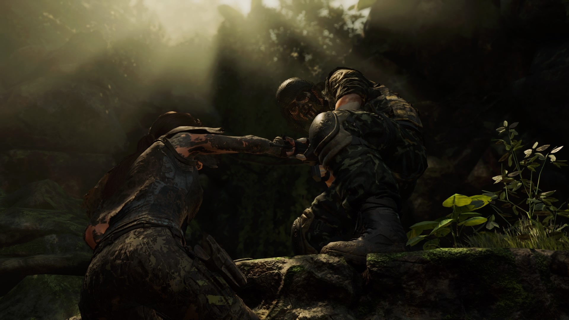 Shadow of the Tomb Raider innova todavía más en este aspecto, teniendo más formas de utilizar el sigilo entre la maleza, contra paredes de vegetación, embadurnados de barro para dificultar ser descubiertos y poder acabar con varios enemigos a la vez en sigilo, ya sea con el machete, el arco o colgándolos de un árbol.