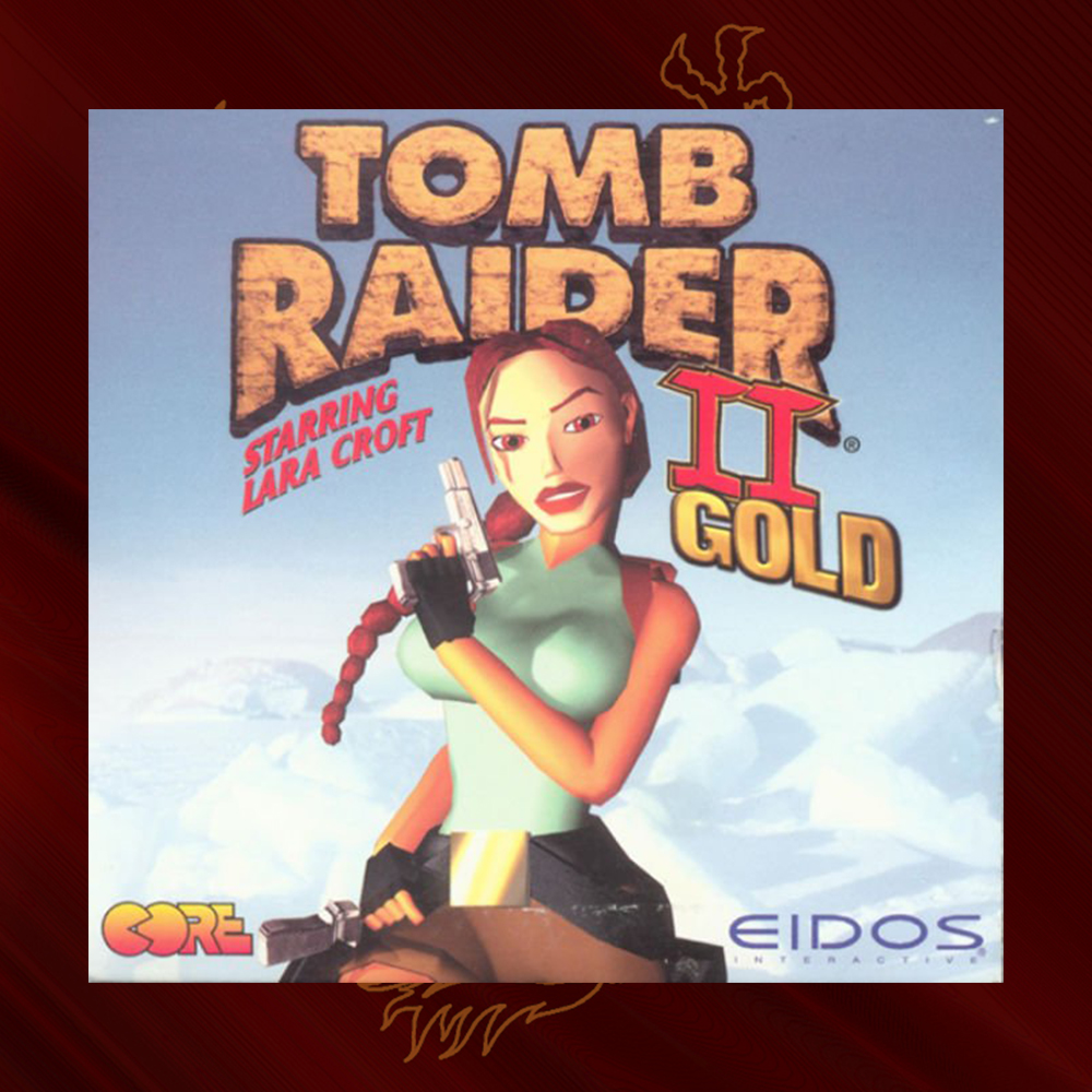 Por supuesto, Tomb Raider II Gold también tenía otra edición única para PC. La funda elegida para esta versión es idéntica al estándar americano excepto por el fondo sobre el que se encuentra Lara Croft.