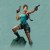 En este arte, el logo está hecho de una textura de piedra redondeada, con el texto «Protagonizada por Lara Croft» y el número («II») diseñado con diferentes fuentes y estilos colocados a ambos lados de Lara.